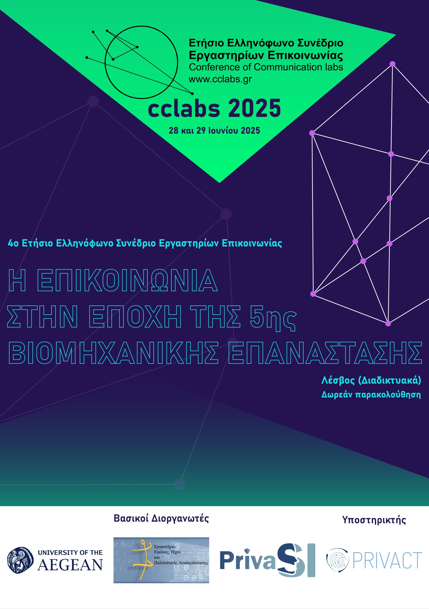 Το Συνέδριο CCLabs2025 με θέμα «Η Επικοινωνία στην εποχή της 5ης Βιομηχανικής Επανάστασης» έδωσε την ευκαιρία για συνάντηση ερευνητ(ρι)ών και επιστημόνων στο σύνολο του φάσματος του αντικειμένου της Δημοσιογραφίας και της Επικοινωνίας, με στόχο τη χαρτογράφηση, σε διεπιστημονικό επίπεδο, της υπάρχουσας κατάστασης σε μια εποχή η οποία χαρακτηρίζεται από ραγδαίες αλλαγές στο πλαίσιο της 5ης Βιομηχανικής Επανάστασης (Industry 5.0). Η 5η Βιομηχανική Επανάσταση διαφοροποιούμενη σημαντικά από την 4η, αναμένεται να επηρεάσει το παρόν και να διαμορφώσει το μέλλον της επικοινωνίας εστιάζοντας στη συνεργασία ανθρώπου-μηχανής, διευκολύνοντας την από κοινού λήψη αποφάσεων και τη δημιουργικότητα, ενσωματώνοντας τη βιωσιμότητα στις επικοινωνιακές στρατηγικές, προωθώντας την εξατομίκευση στην επικοινωνία αλλά και τη συνεχή ανάδραση.